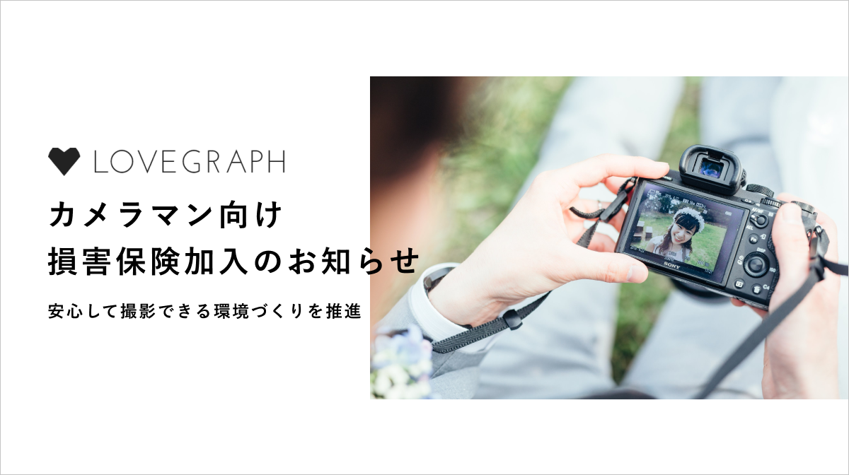 出張撮影のラブグラフ、カメラマン向け損害保険加入のお知らせ