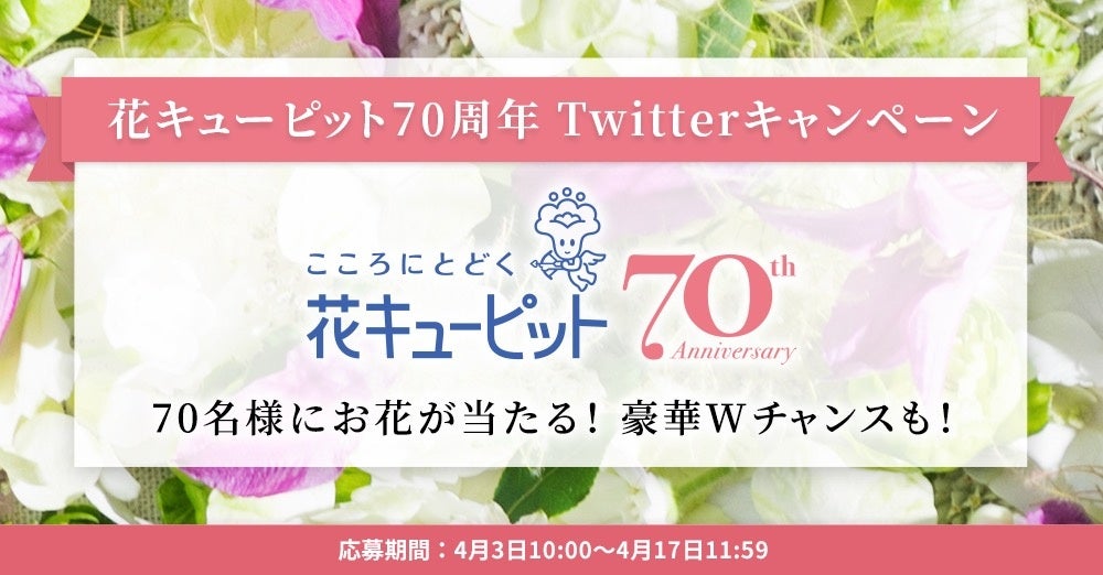 花キューピット70周年、感謝を込めて70人にお花が当たるTwitterキャンペーン