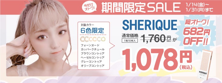 Youtuberねおちゃんモデルのカラーコンタクトブランド「SHERIQUE(シェリーク)」の6色が1箱1,078円のお年玉セール開催!2022年1/14~1/31