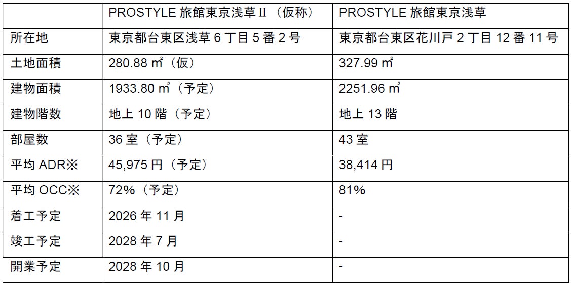 ※「PROSTYLE旅館東京浅草Ⅱ(仮称)」に関するこれらの見通しは、過去の実績および経営陣の想定に基づいております。実際の結果は大きく異なる可能性があり、ここに記載された目標が達成されることを保証するものではありません。