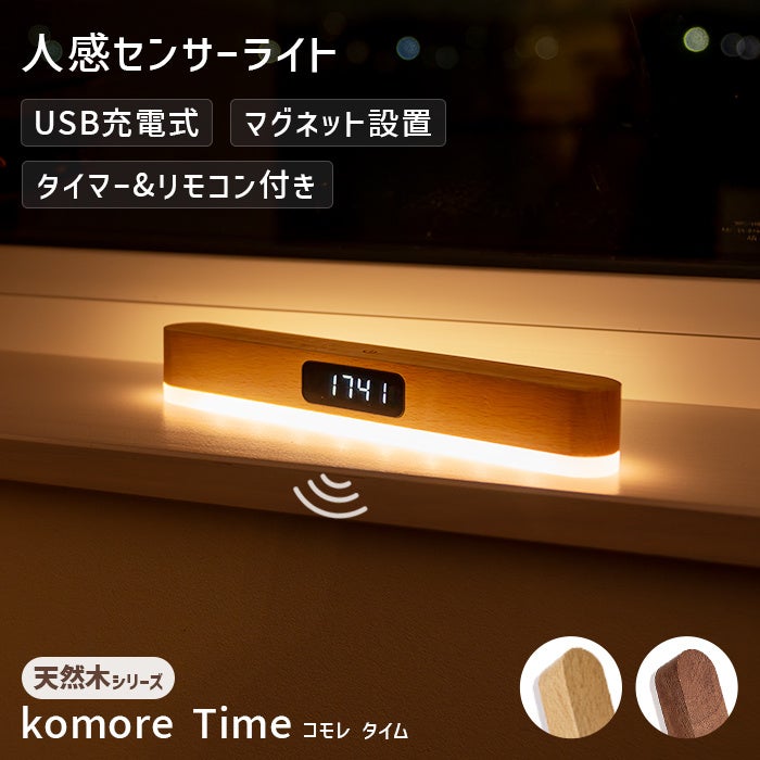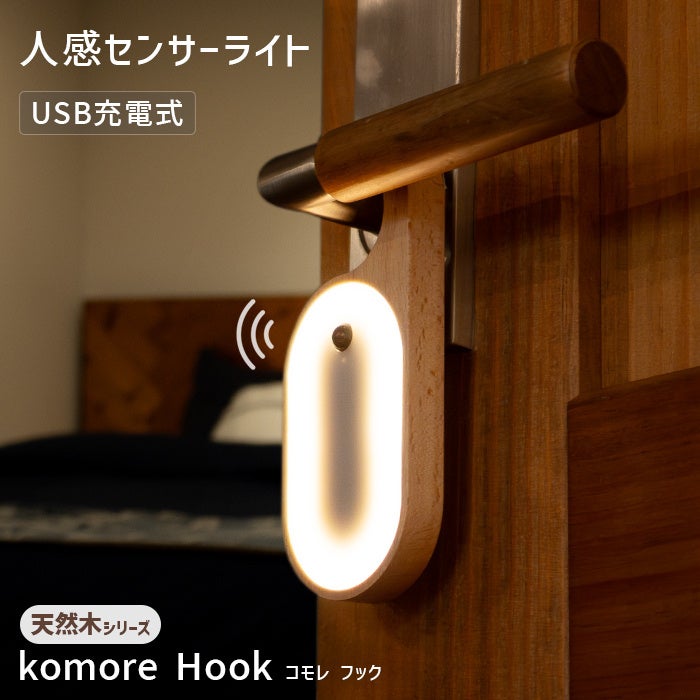 【新発売】天然木シリーズの室内用人感センサーライト4種。フック、壁付け、直置きと様々な設置場所に対応。
