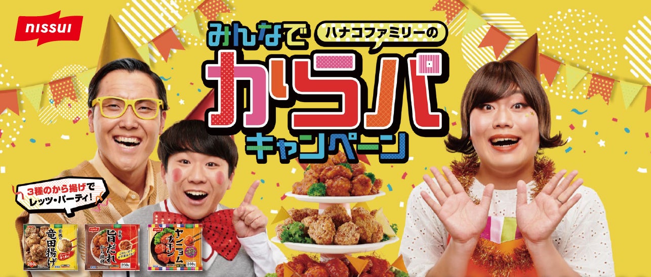 ニッスイ家庭用冷凍食品「若鶏の竜田揚げ」など3品で「ハナコファミリーのみんなでからパキャンペーン」実施