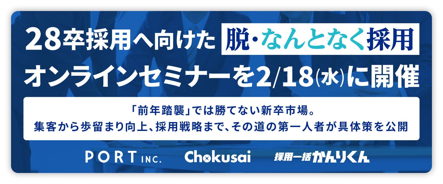 【3社共催】28卒採用へ向けた『脱・なんとなく採用』オンラインセミナーを2/18(水)に開催