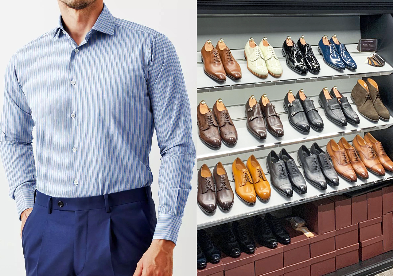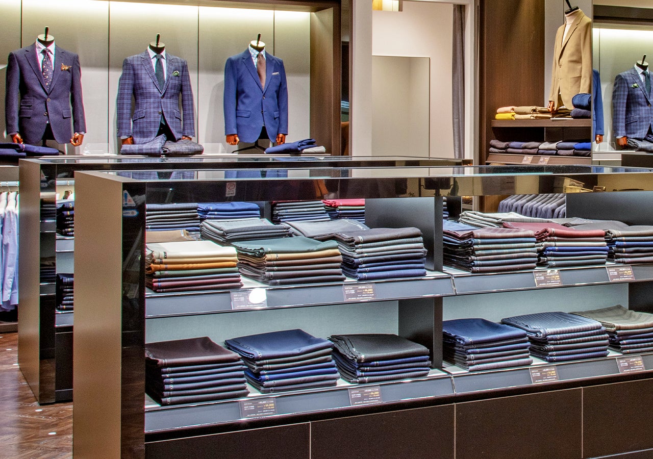 スーツやシャツはもちろん、コート、シューズ、ニットなど多岐にわたるアイテムをご用意。
