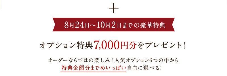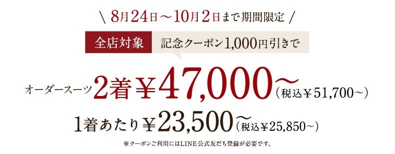 期間中にオーダースーツ2着をご注文で<7,000円分>選べる豪華特典も必ずプレゼント!