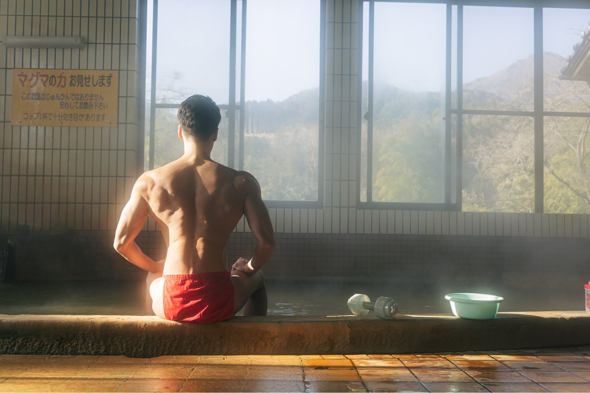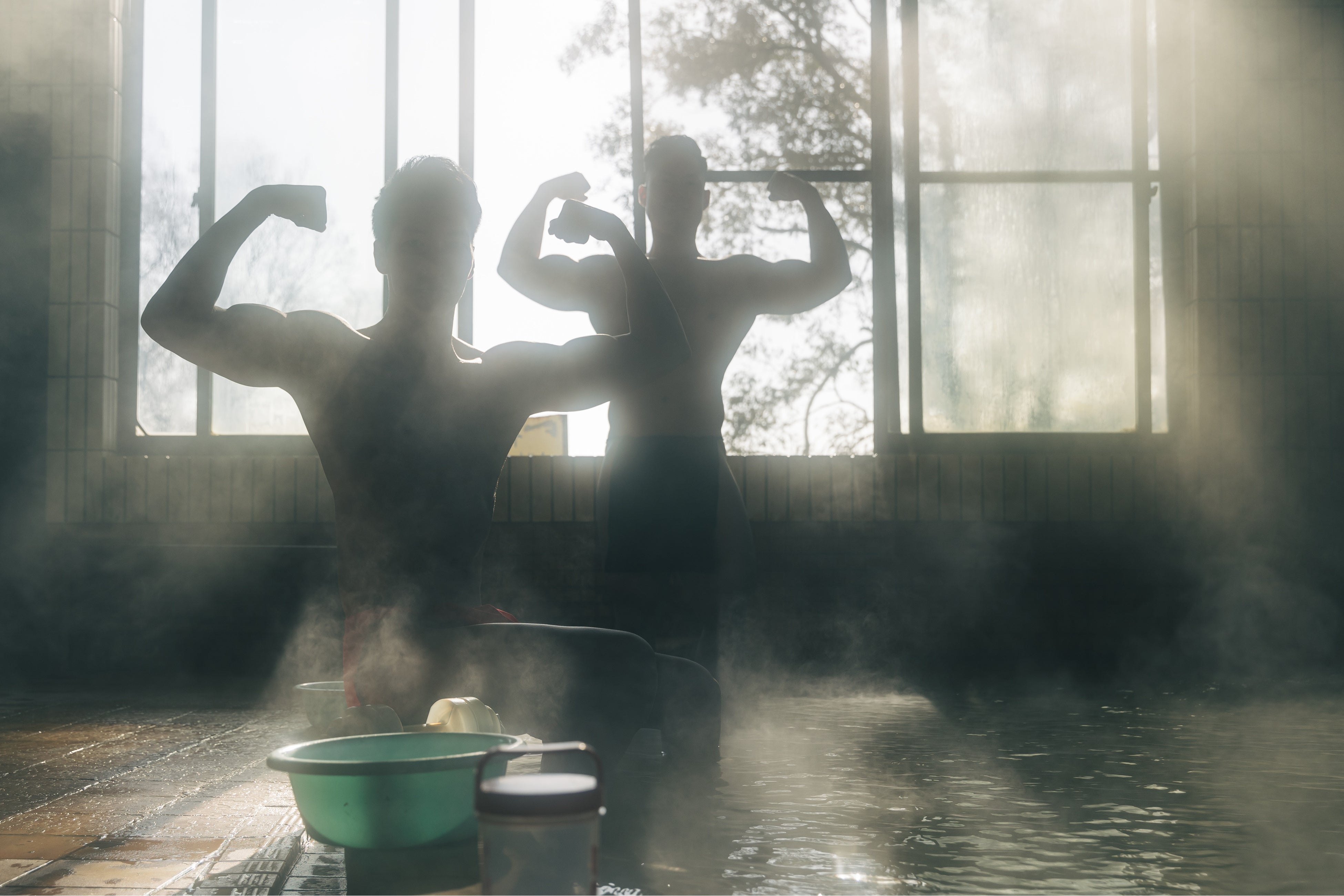 「朝風呂に入るマッチョ」
