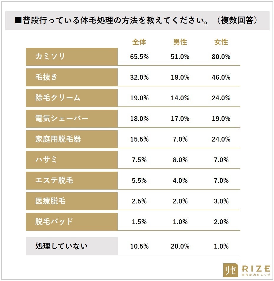 カミソリ 65.5%(男性:51.0% 女性:80.0%)