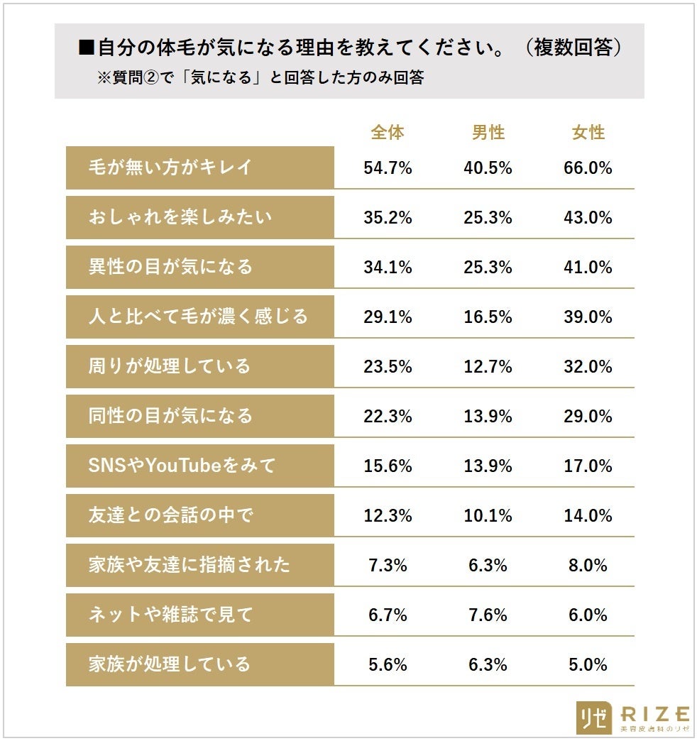 ■質問/自分の体毛が気になる理由を教えてください。(複数回答)