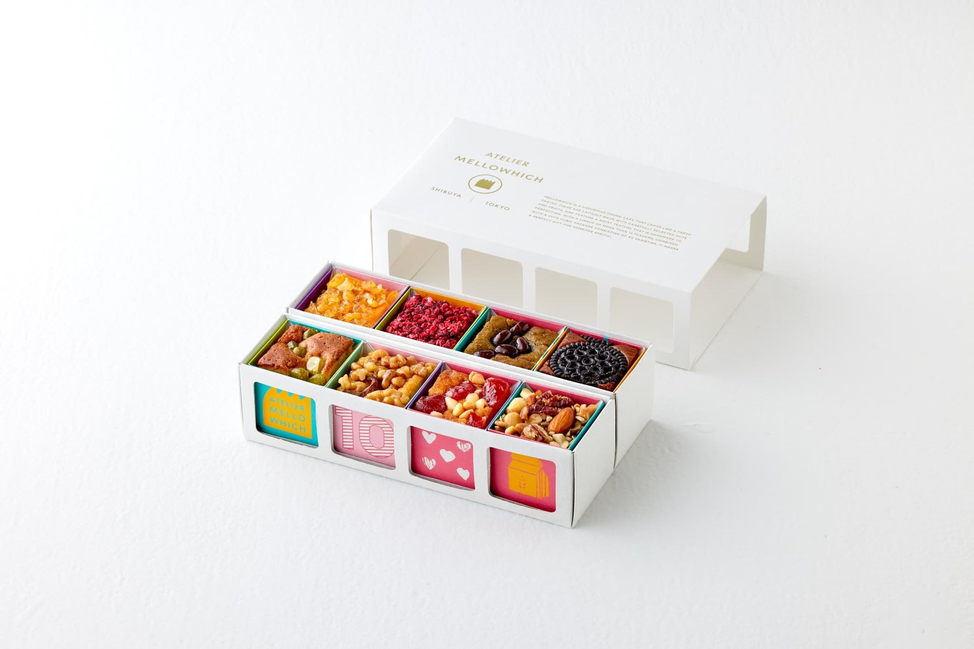 厳選したナッツやフルーツを使用し、手焼きにこだわった、生菓子のようにしっとりと仕上げたパウンドケーキ。色とりどりのパッケージから選ぶ楽しさも味わえる、一つひとつが可愛い宝石のような焼き菓子は贈り物にもおすすめです。