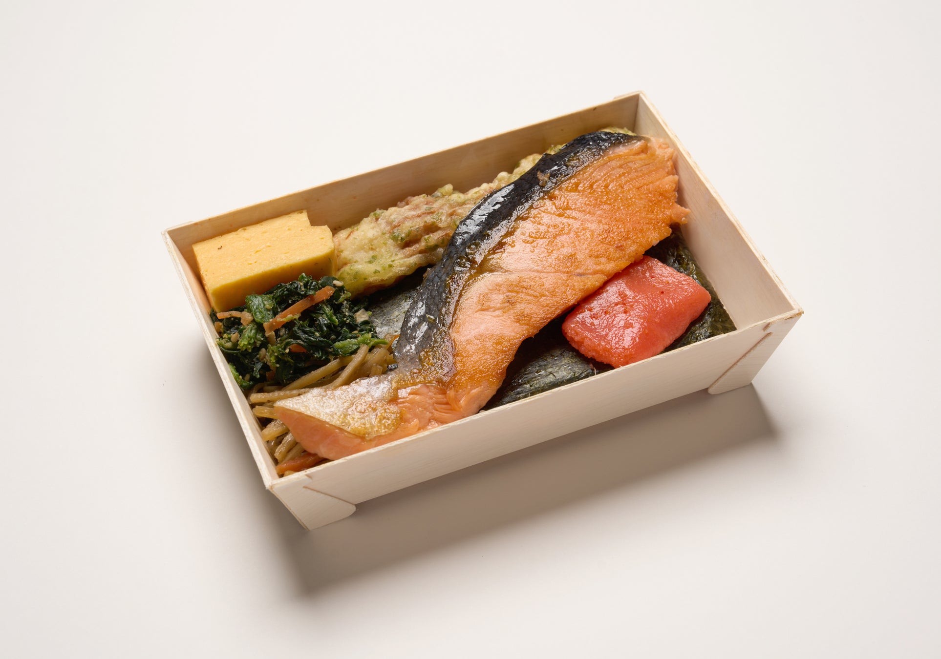日本の食文化で欠かすことのできない素材「昆布、鰹節、煮干し」で丁寧に引いた出汁とあわせ、火力の強い釜で炊き上げた「出汁ごはん」を詰めた海苔弁をはじめ、焼き魚や唐揚げなどの惣菜、おにぎりなどを展開します。季節限定のわっぱ飯も提供します。