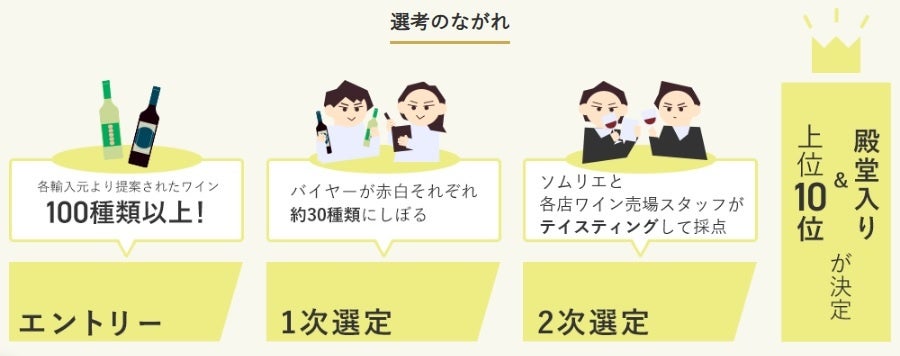 東急百貨店のワイン担当バイヤーと売場スタッフが100種類以上のワインの中からテイスティングを行い採点し、その結果をランキング形式で紹介・販売している「東急百貨店 おすすめワインランキング」。「毎日飲んでも飽きない、食事との相性が良いデイリーワイン」をコンセプトに2013年からスタートし、毎年実施しています。昨年からは、東急ホテルズ&リゾーツ、東急ストアソムリエも合同でのテイスティング選定会がスタートしました。コストパフォーマンスに優れたワインを取り揃え、多くのお客さまからご支持をいただいているワイン売場の人気コーナーです。今年のランキングは、店頭にて4月3日から展開しています。