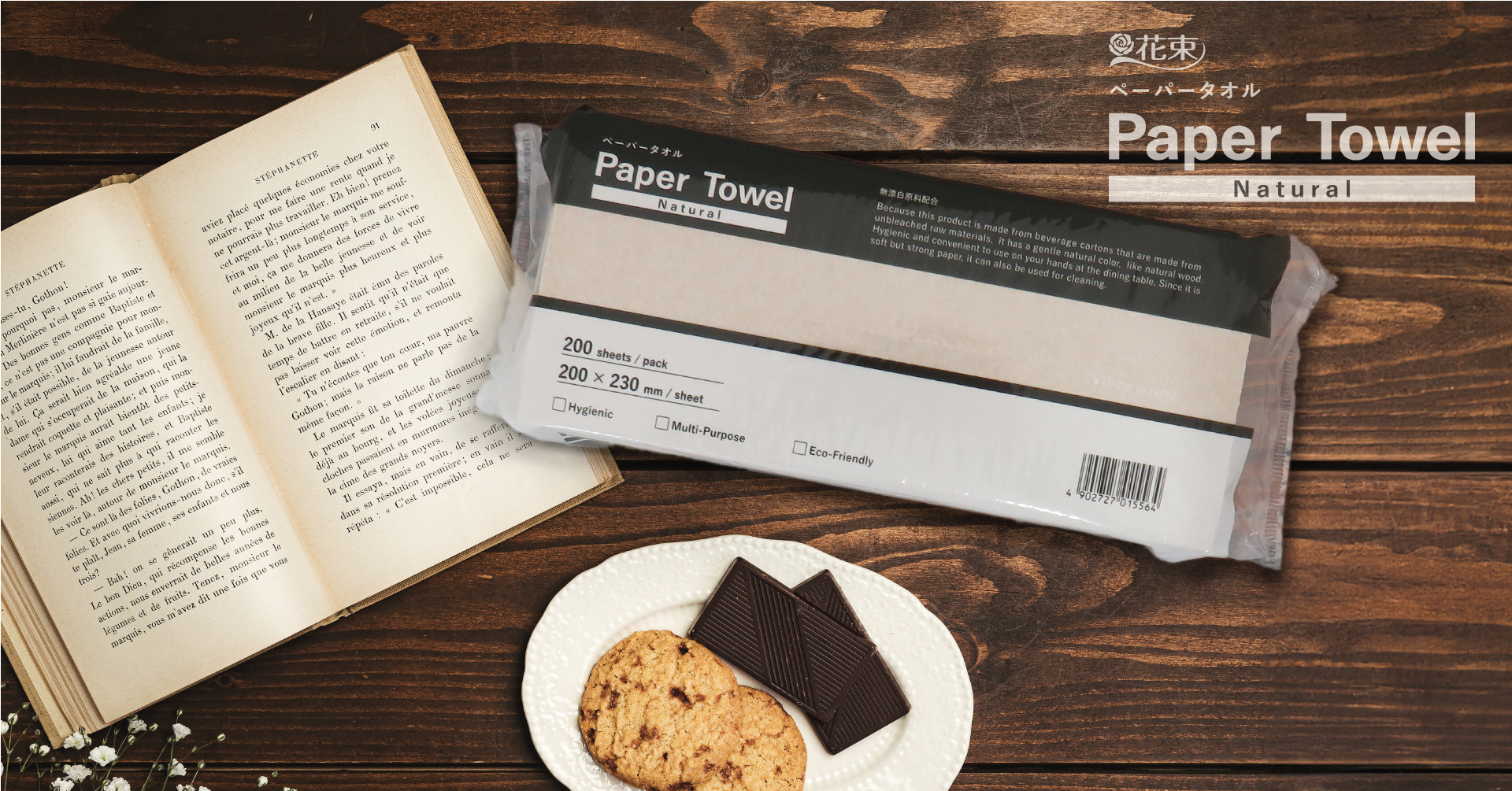 当社はこれまでにも、2018年にハンドタオル(ソフト)、新型コロナウイルス感染拡大に先駆けて2020年にペーパータオル(ハード)を発売しており、生活に役立つ製品開発に努めて参りました。今回新たに開発した「花束ペーパータオルナチュラル200枚」は、さらに環境のことを考えた無漂白原料配合のナチュラルカラーのペーパータオルです。