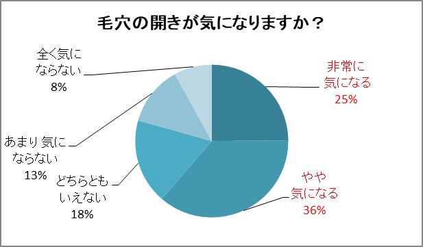 「毛穴の開き」を「非常に気になる」「やや気になる」と回答した人は61%と半数以上。