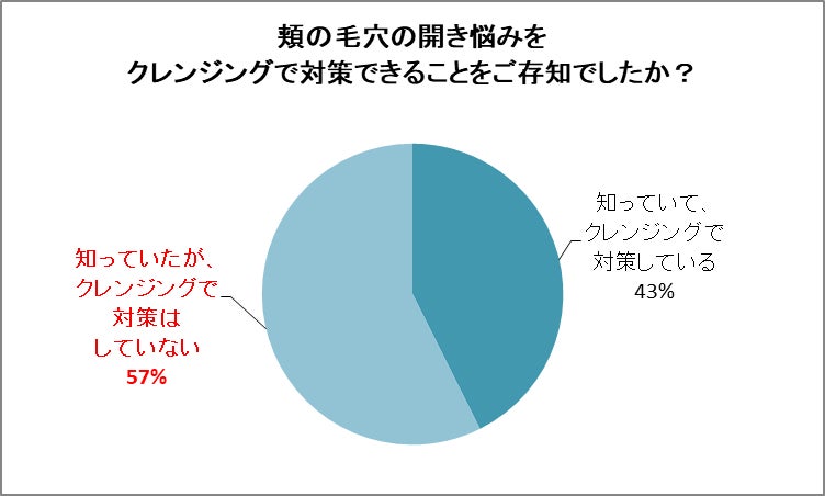 クレンジングで「頬の毛穴の開き」の対策ができると知らない人は8割以上という結果に。
