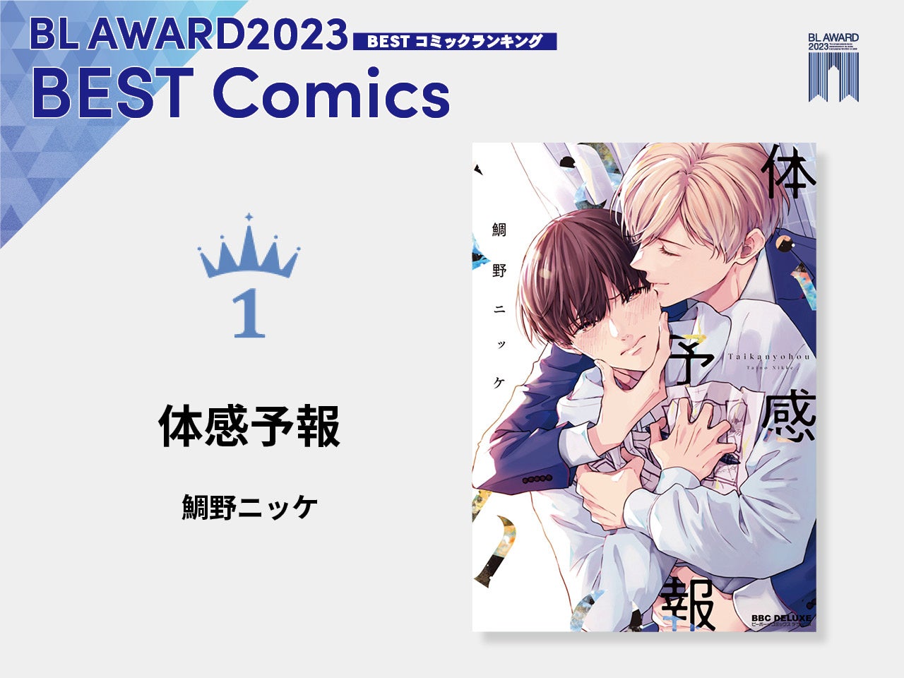 BLアワード2023は、俺様な天気予報士と健気な漫画家の不器用な溺愛を描いた『体感予報』(鯛野ニッケ)がコミック部門1位を獲得。丁寧な心情描写のヒューマンラブコメが注目された2022年を象徴する結果となりました。