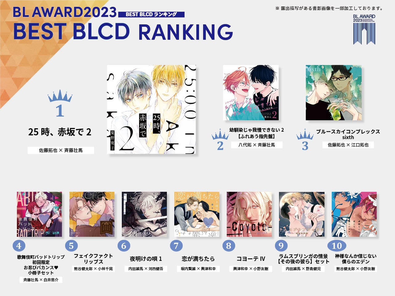 さらにBLCD部門では『25時、赤坂で 2』が、シリーズ部門では『25時、赤坂で 4』が1位を飾り、今や芸能界BLの代表ともいえる『25時、赤坂で』の根強い人気を表す結果となりました。