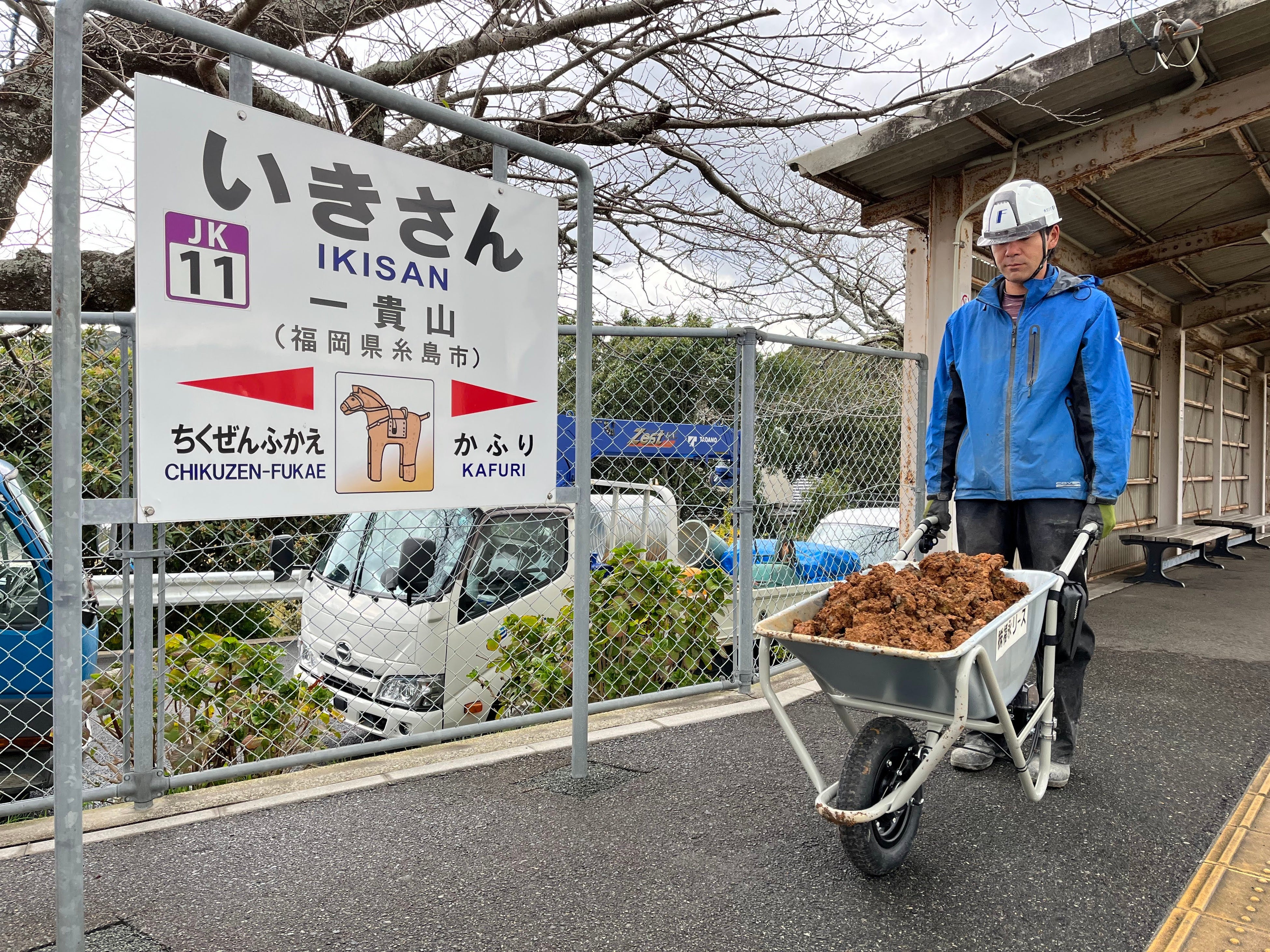 ・作業内容:JR筑肥線の駅のホーム上の1㎥程度の土砂を100m程度運搬し、スロープを登ってトラックに積み込む(1.6t)