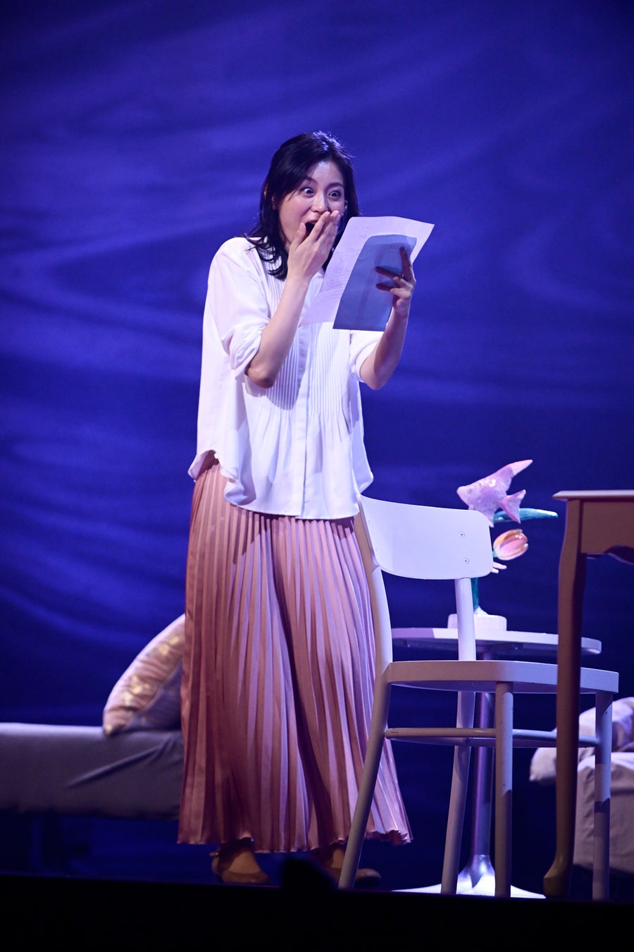 2020年に新国立劇場で初めて舞台化された本作は今回、櫻井いちこ役に本仮屋ユイカ、いちこの脳内会議メンバーの<議長>吉田役に八木勇征(FANTASTICS from EXILE TRIBE)、年上の編集者・越智宏彦役に平野良、年下のアート系男子・早乙女亮一役に白石隼也、脳内会議メンバーの<ポジティブ思考>石橋役に猪野広樹、脳内会議メンバーの<瞬間の感情>ハトコ役に早川夢菜、脳内会議メンバーの<ネガティブ思考>池田役に木村花代、脳内会議メンバーの<記憶・過去を振り返る思考>岸役に石黒賢という新たな布陣、演出での上演となりました。