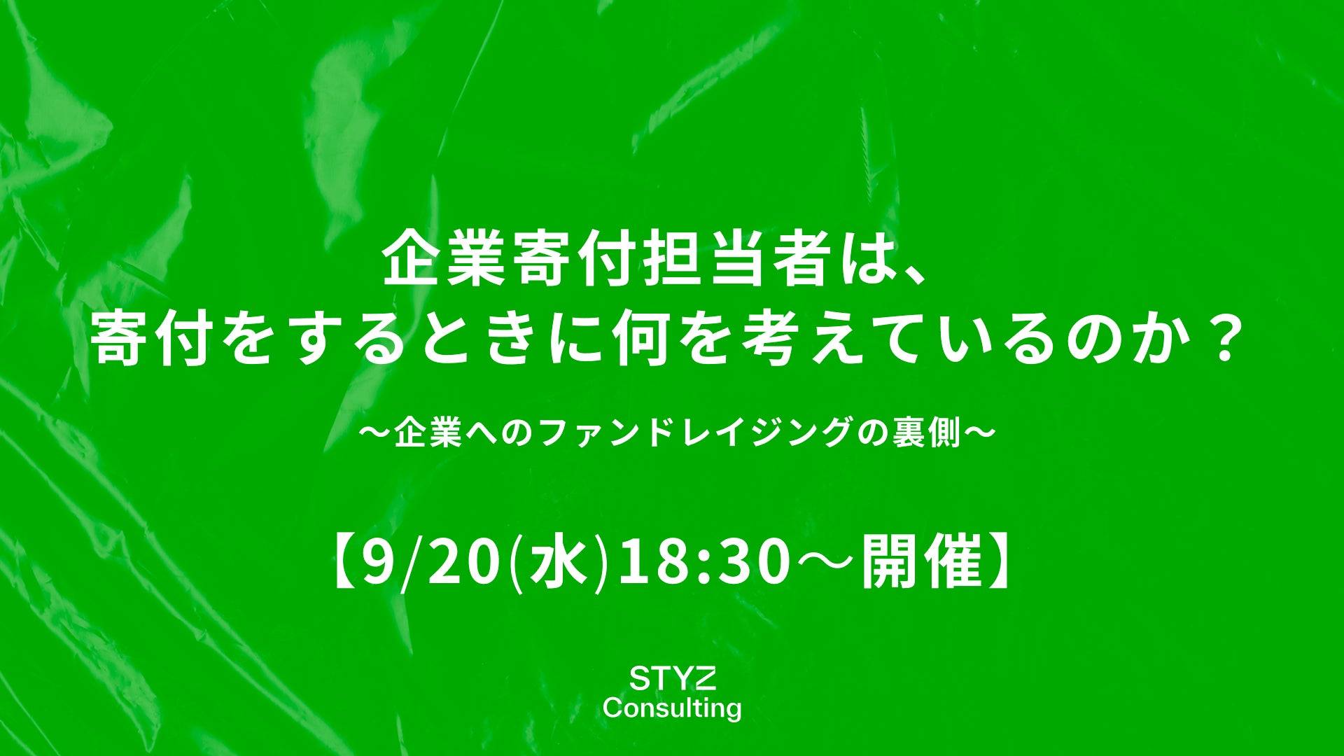【9/20(水)18:30~セミナー開催】企業寄付担当者は、寄付をするときに何を考えているのか?~企業へのファンドレイジングの裏側〜