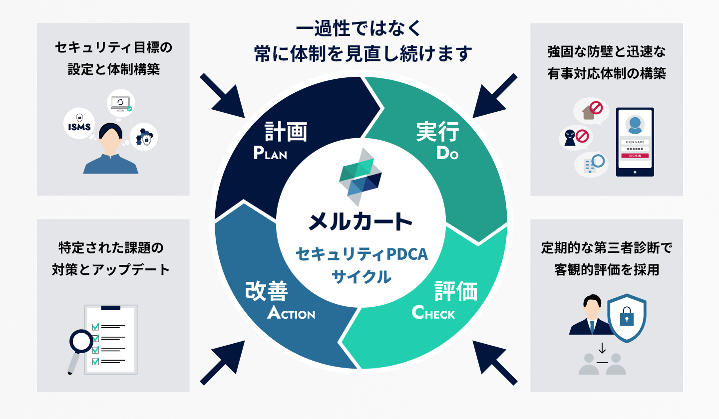 メルカートは今後も、第三者による評価を継続し、セキュリティ体制の維持・向上に取り組んでいきます。あわせて、国際的なセキュリティ基準への対応を含め、現状に満足しない姿勢で、より高い水準の安全性を追求していく方針です。