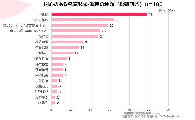 4.看護師が〝関心のある“ 資産形成・運用の種類で最も多いのは、「NISA」
