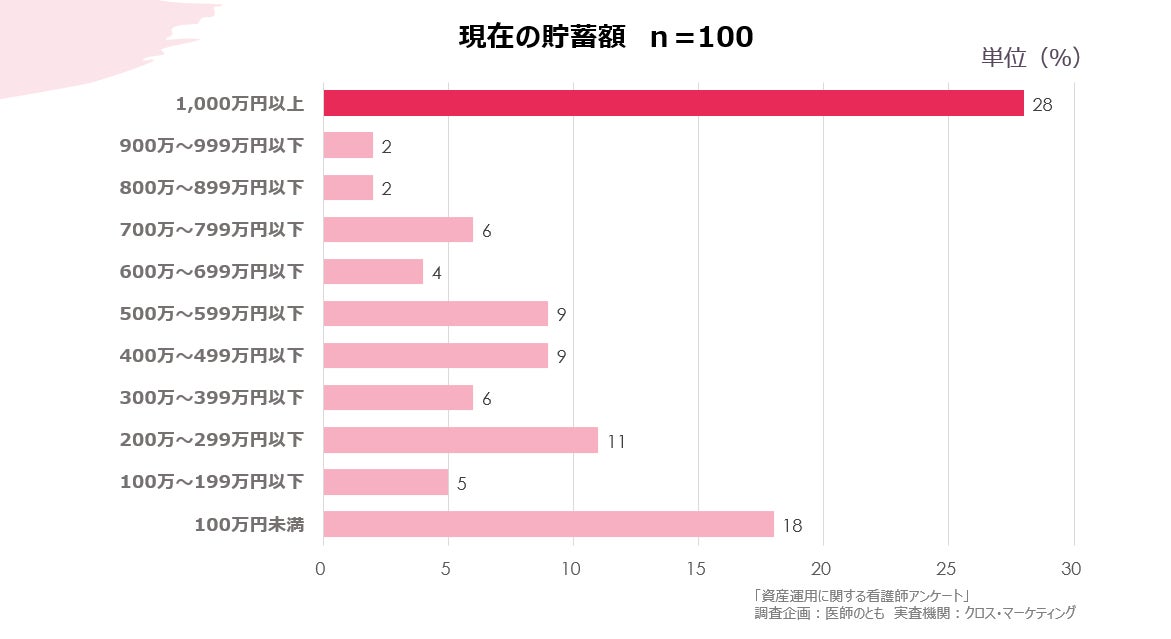 1.看護師の貯蓄額で最も多かったのは、「1,000万円以上」