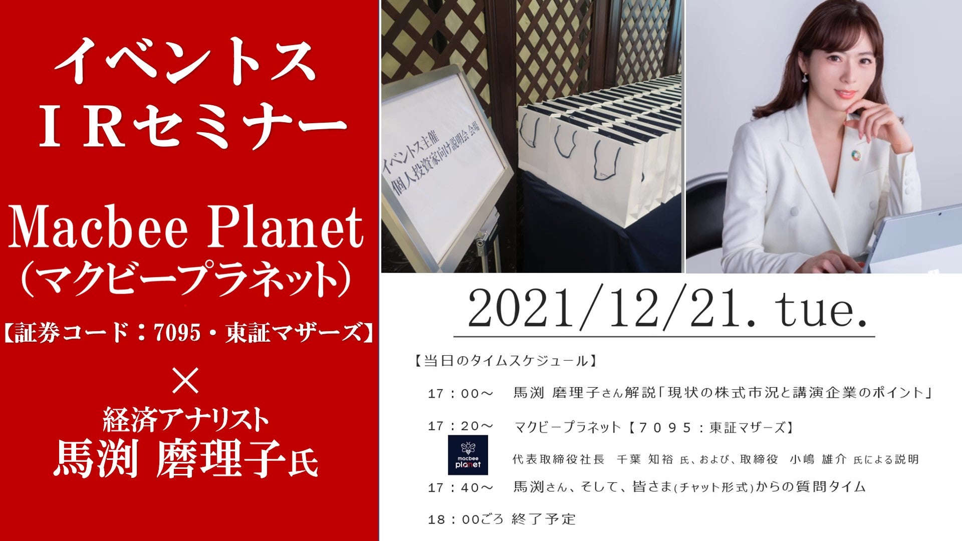 創業者と新社長が成長戦略と新経営体制をライブで語る Macbee Planet「IRセミナー」12月21日17時から、オンラインで開催