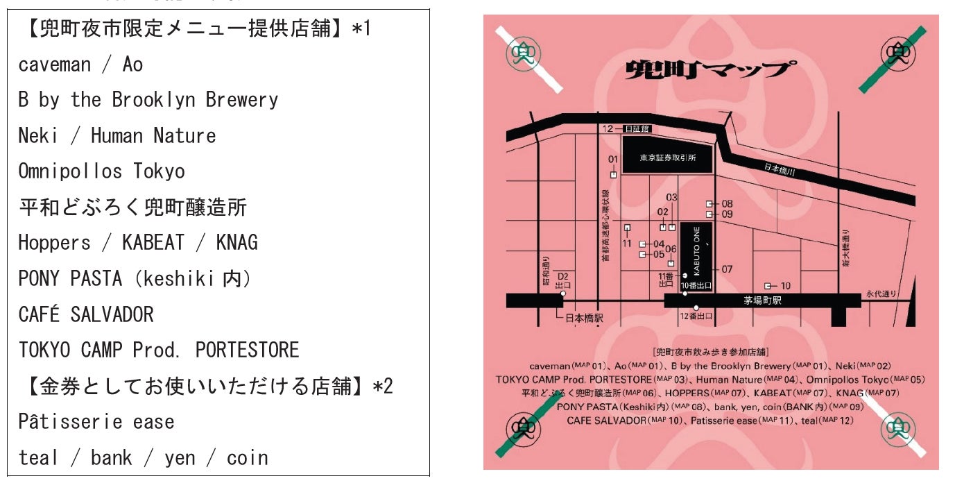 場所:兜町近隣の飲食店舗(下記【参加店舗】参照)