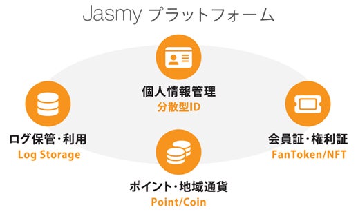 「Jasmyプラットフォーム」は、ガス代ゼロのJasmyブロックチェーンを活用し、企業や自治体がデータベースを構築せずに、全く新しいデータ管理を実現します。分散型IDにより個人情報を保護し、耐改ざん性に優れたログデータ管理で信頼性を確保。また、ポイントや地域通貨の決済履歴との連携により、データ経済圏の構築が可能です。さらに、個人に紐づいたNFTの発行も容易になり、データの真正性を担保します。