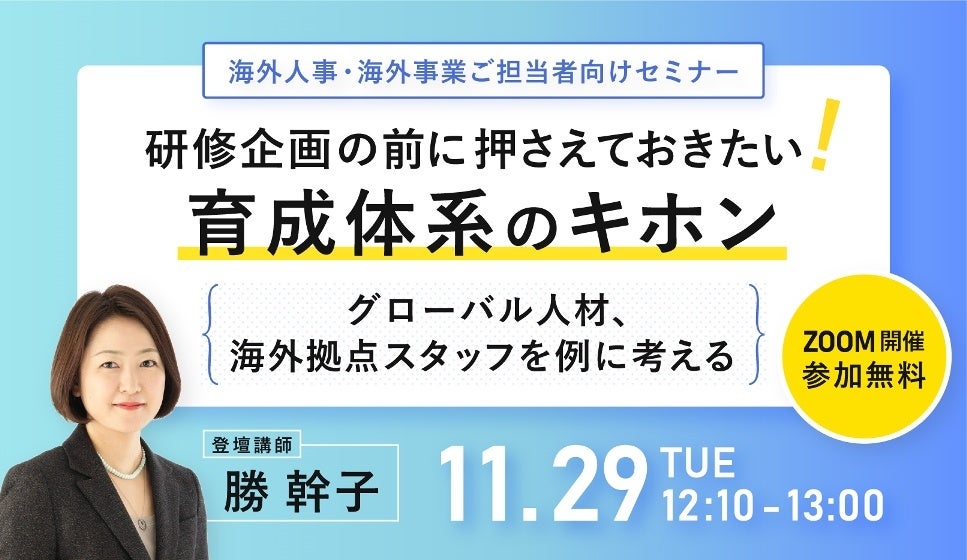 【研修企画の前に押さえておきたい「育成体系のキホン」~グローバル人材、海外拠点スタッフを例に考える~】サイコム・ブレインズ、シニアコンサルタント勝幹子によるオンラインセミナーを11月29日(火)に開催