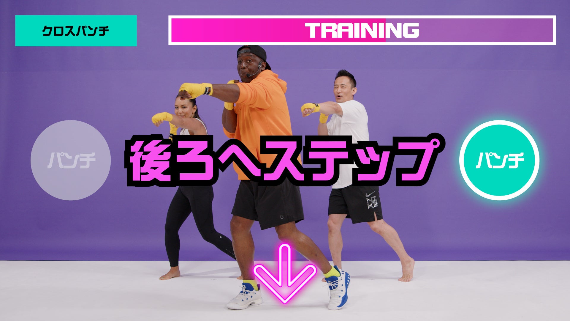 BOOM BOOM BOXINGは、ビリー隊長と一緒にゲーム感覚でボクササイズレッスンを楽しめるプログラムです。画面に表示される色とりどりのCGアニメーションにあわせて、パンチやボクササイズステップを繰り返します。