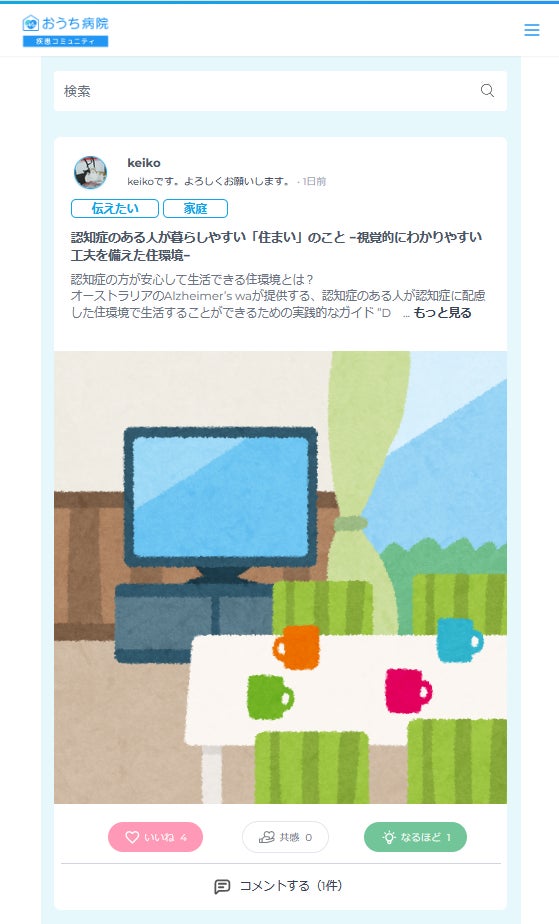 おうち病院では、今後も、利用者の要望を取り込み疾患コミュニティの機能アップデートを進めて参ります。