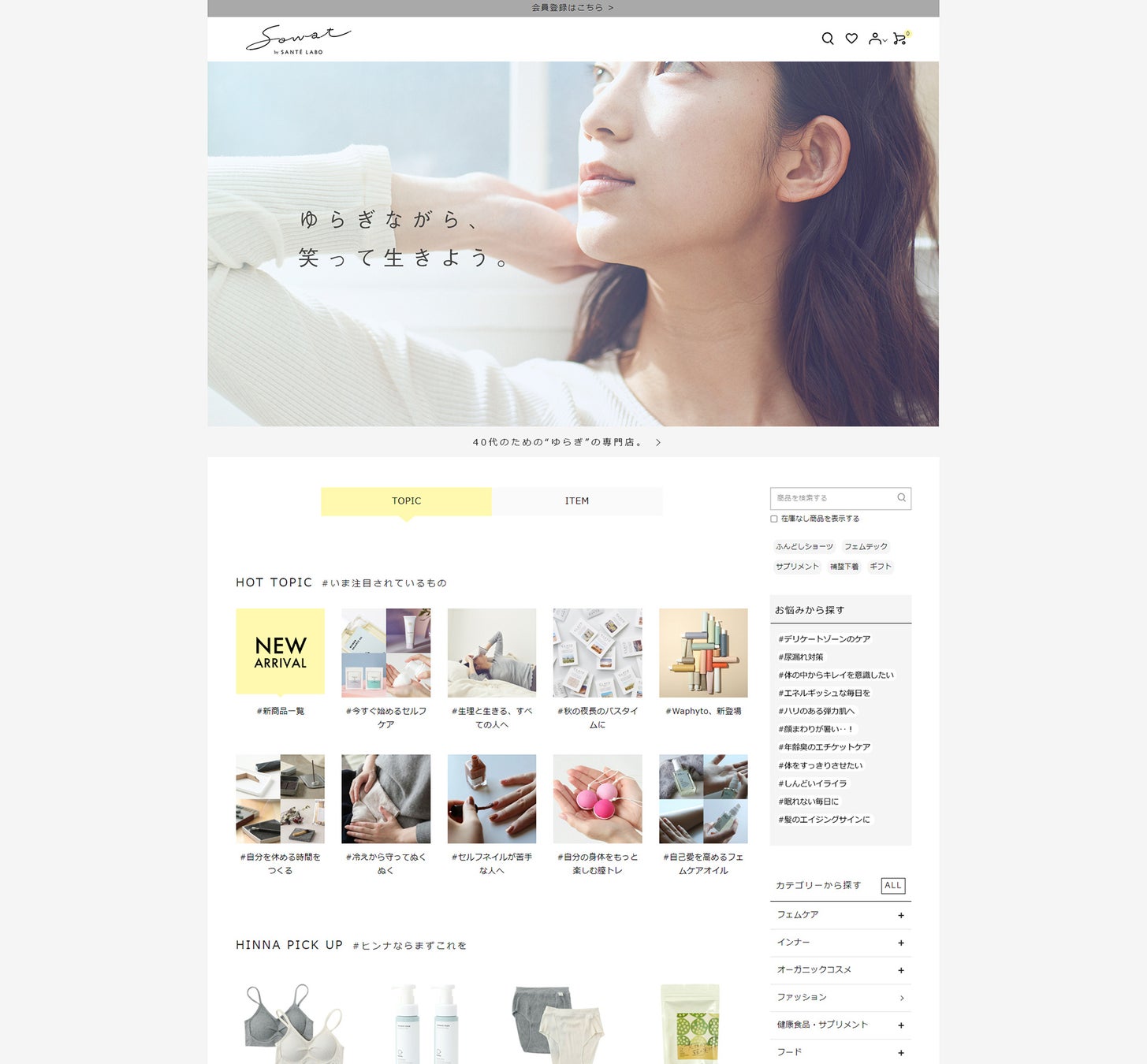 “ゆらぎ”専門店「sowat(ソワ)by SANTÉ LABO」がグランドオープン。40代のプレ更年期の悩みに商品やコンテンツを通じて寄り添うフェムケアECショップ