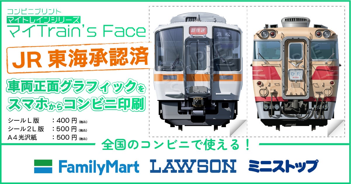 【JR東海承認済】超リアル鉄道車両の正面グラフィックのコンビニプリントサービス『マイTrain's Face』が遂に登場!