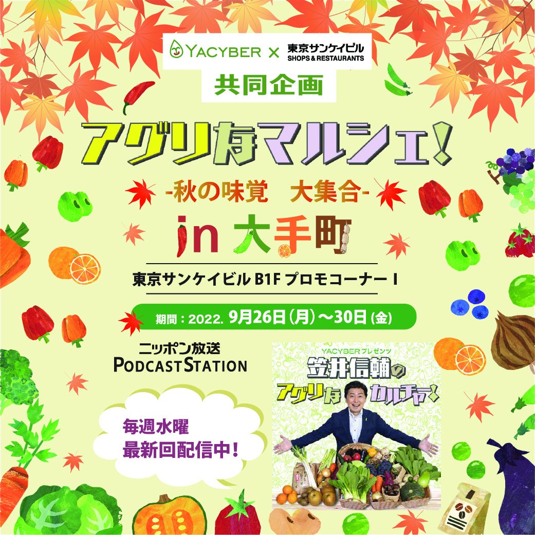 食欲の秋、1週間限定オープン!YACYBER株式会社は『アグリなマルシェ - 秋の味覚 大集合 - IN 大手町』 を東京サンケイビル B1 プロモコーナー Iにて出店いたします。