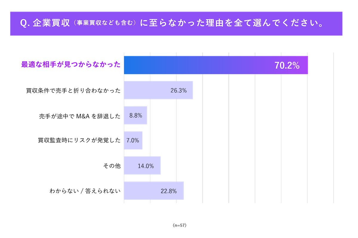 3)買収に至らなかった理由で最も多かったのは「最適な相手が見つからなかった」