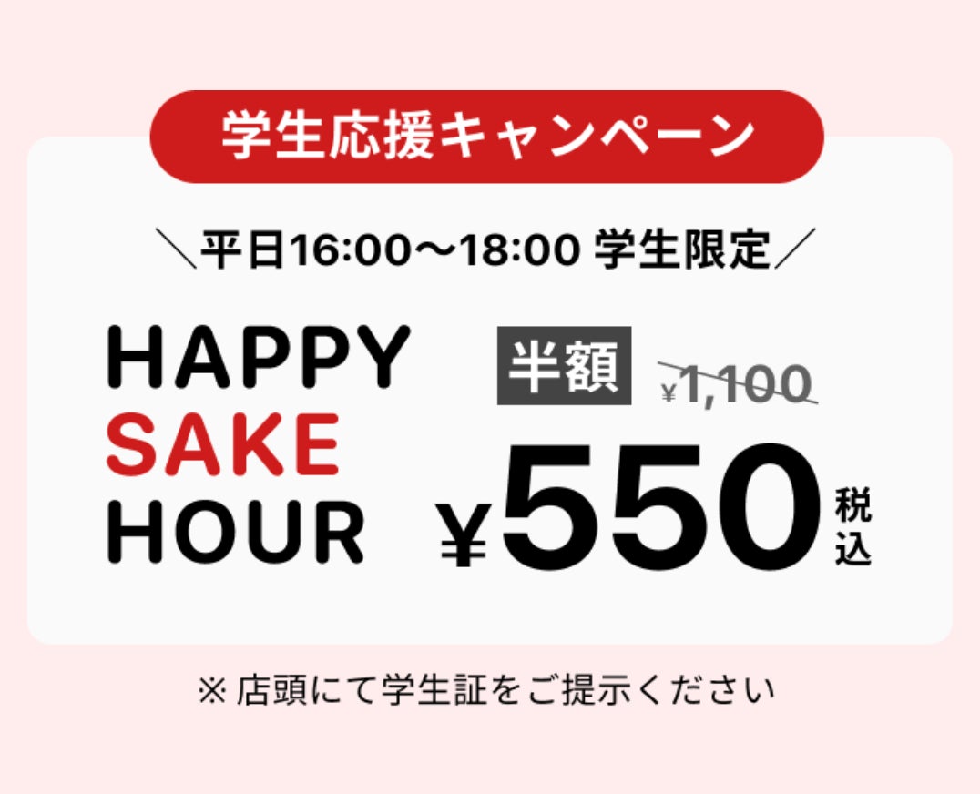 学生限定“HAPPY SAKE HOUR” 詳細