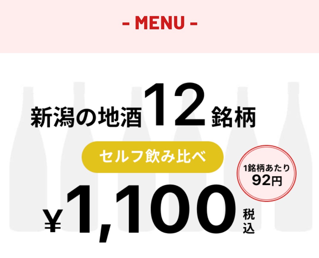 内容 :新潟12蔵の日本酒12銘柄(各10 mL)飲み比べ体験