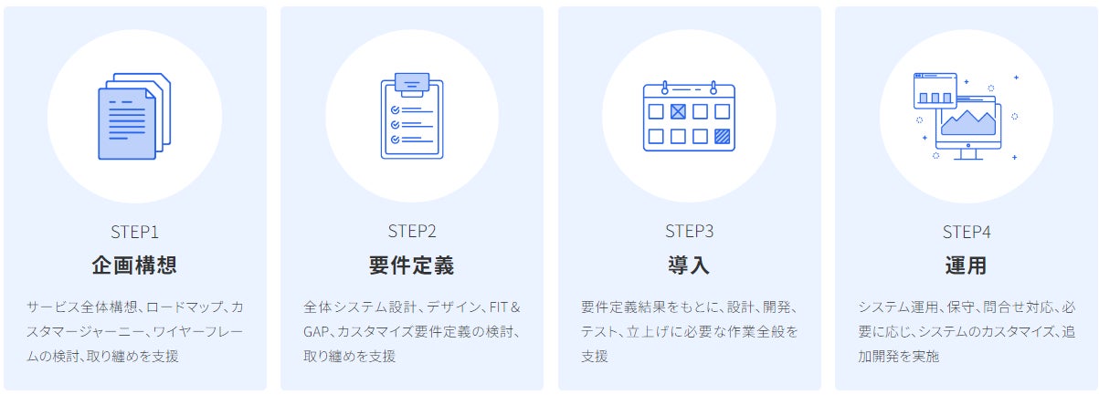 『Sharing Cloud』 導入に際しては、確実なサービス立上げを実現に向け、構想・要件定義・導入・運用、まで一気通貫でご支援します。