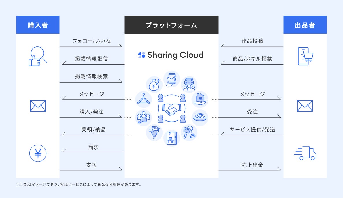 『Sharing Cloud』を活用することで、様々なシェアリングサービスの構築が可能です。