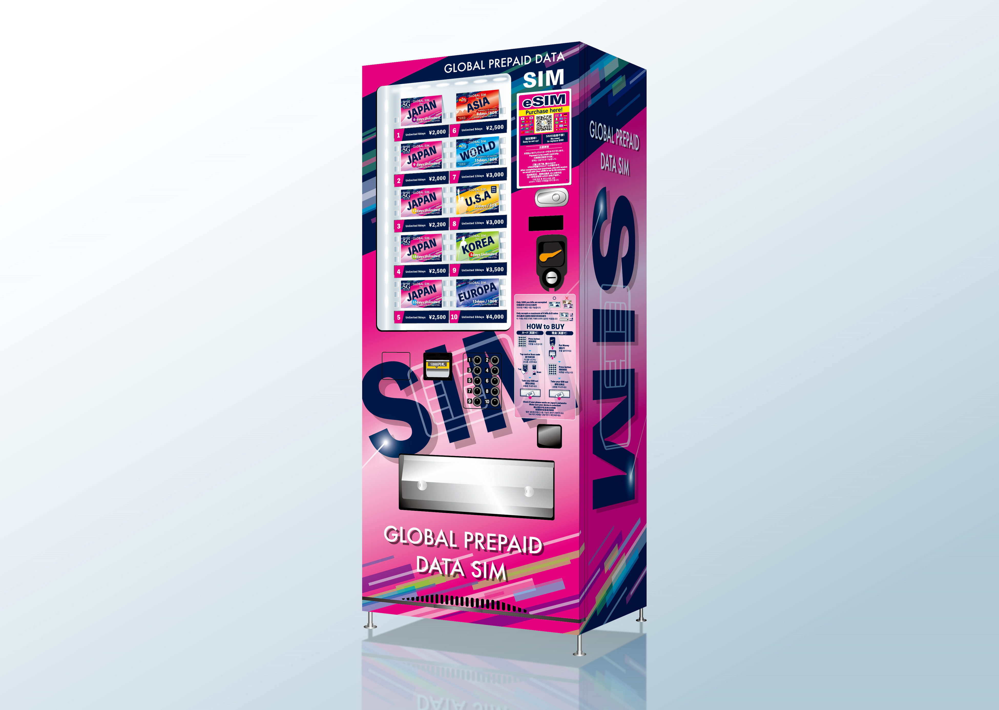 モバイルデータ通信プリペイドサービスを販売するSIMカード&eSIM自動販売機を設置し、外国人観光客向けに通信環境を提供いたします。