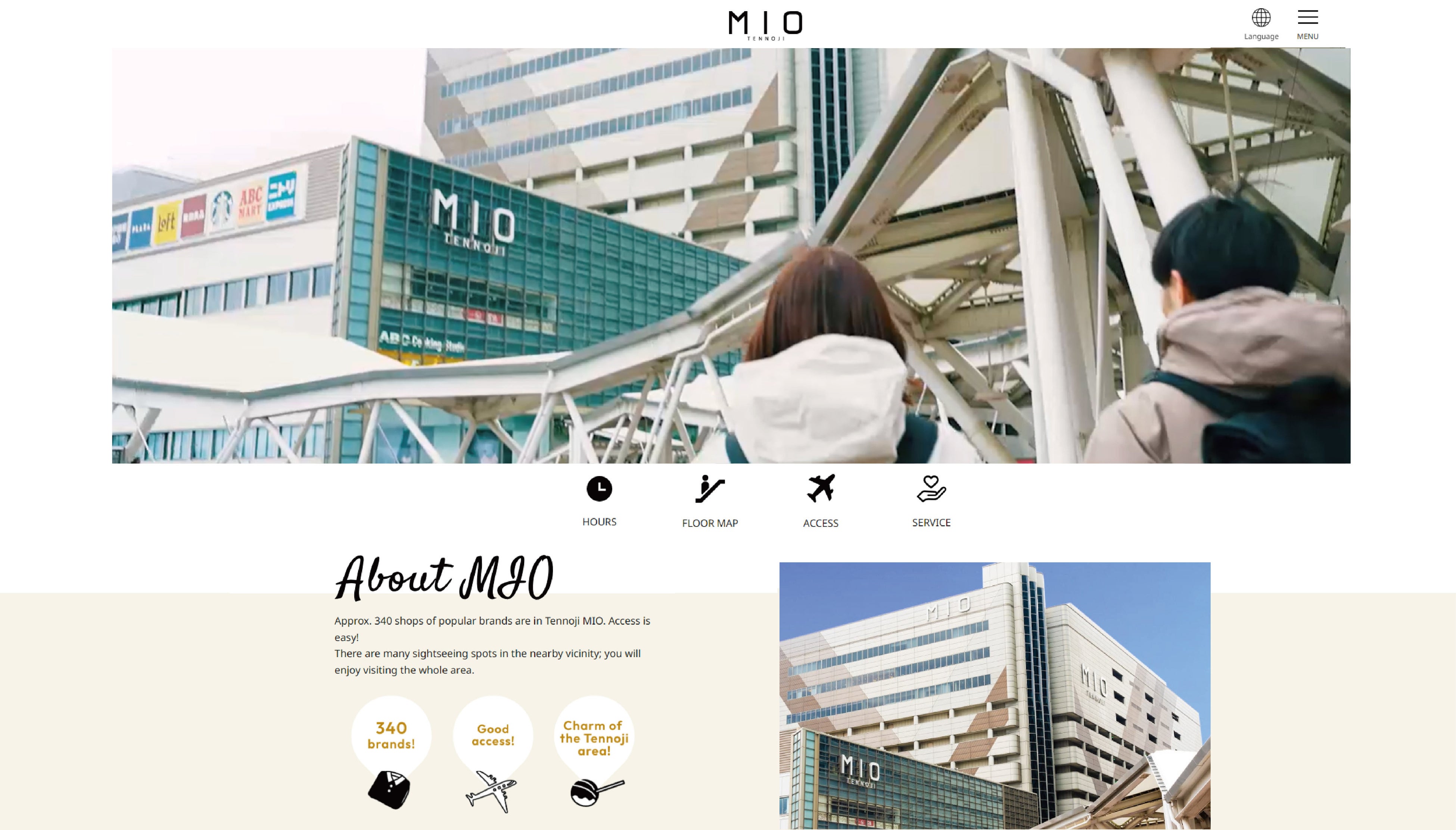 公式HP:https://www.tennoji-mio.co.jp/lang/en(英語表記)
