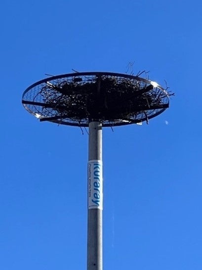 絶滅危惧種であり、国の特別天然記念物に指定されているコウノトリを、安全に営巣・孵化させるため、人工巣塔(ポールの上に巣づくりしやすいよう丸い台座を付けたもの)を設置するなどの保護活動が行われています。2024年までに3基の巣塔が設置され、この度クラレの支援により4基目が建設されました。神栖市では2年連続で孵化に成功し、合計10羽のコウノトリが巣立っています。