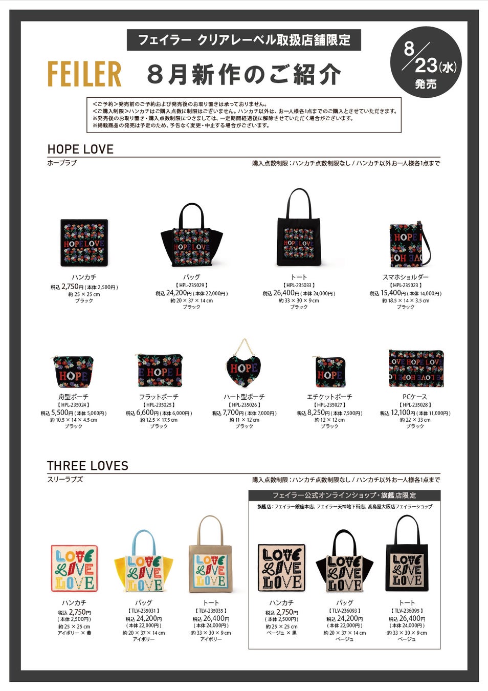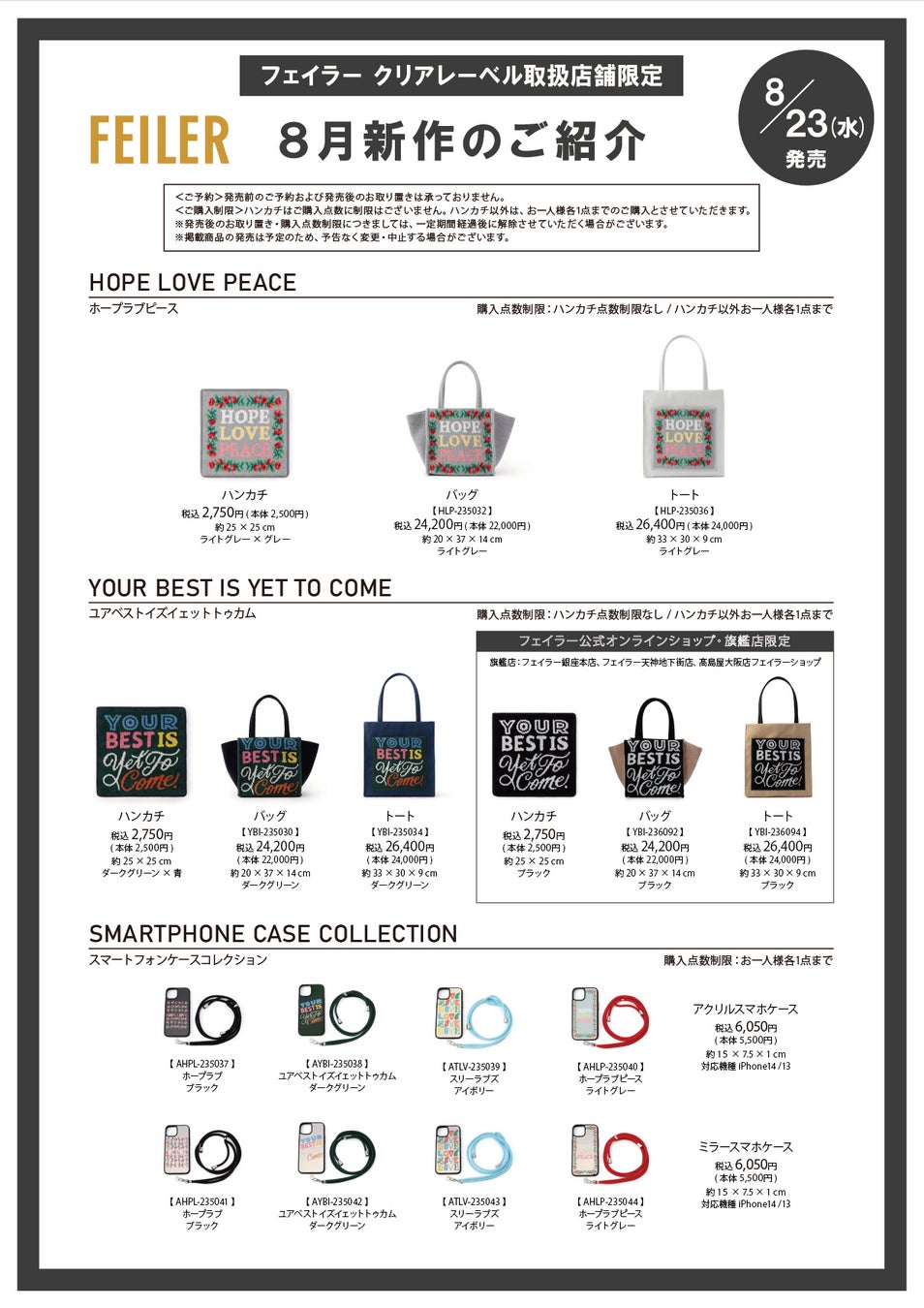 ◆フェイラー公式オンラインショップ https://feiler.jp/clearlabel ※2023年8月23日(水)正午発売予定