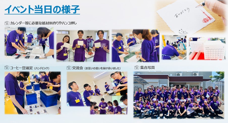 本イベントでは、カレンダーに必要な紙材料作りやコーヒー豆選定(ハンドピック)を、リクルートスタッフィングの従業員が体験しました。