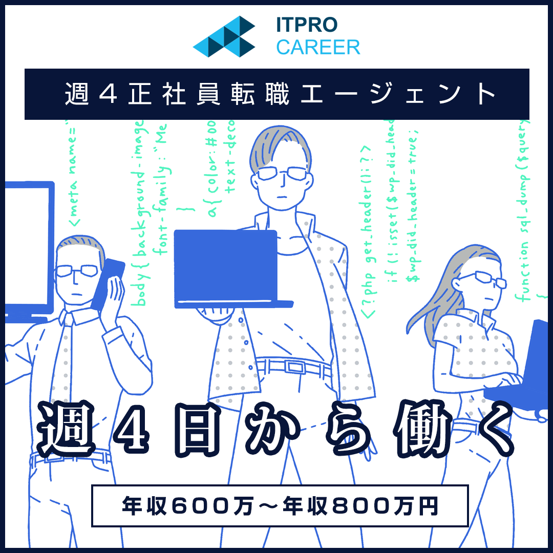 フリーランス向け案件マッチングサービス「ITプロパートナーズ」にて、クライアント企業様から「業務委託だけでなく、週4日勤務でも優秀なエンジニアを正社員で採用したい」という声を頂くようになりました。