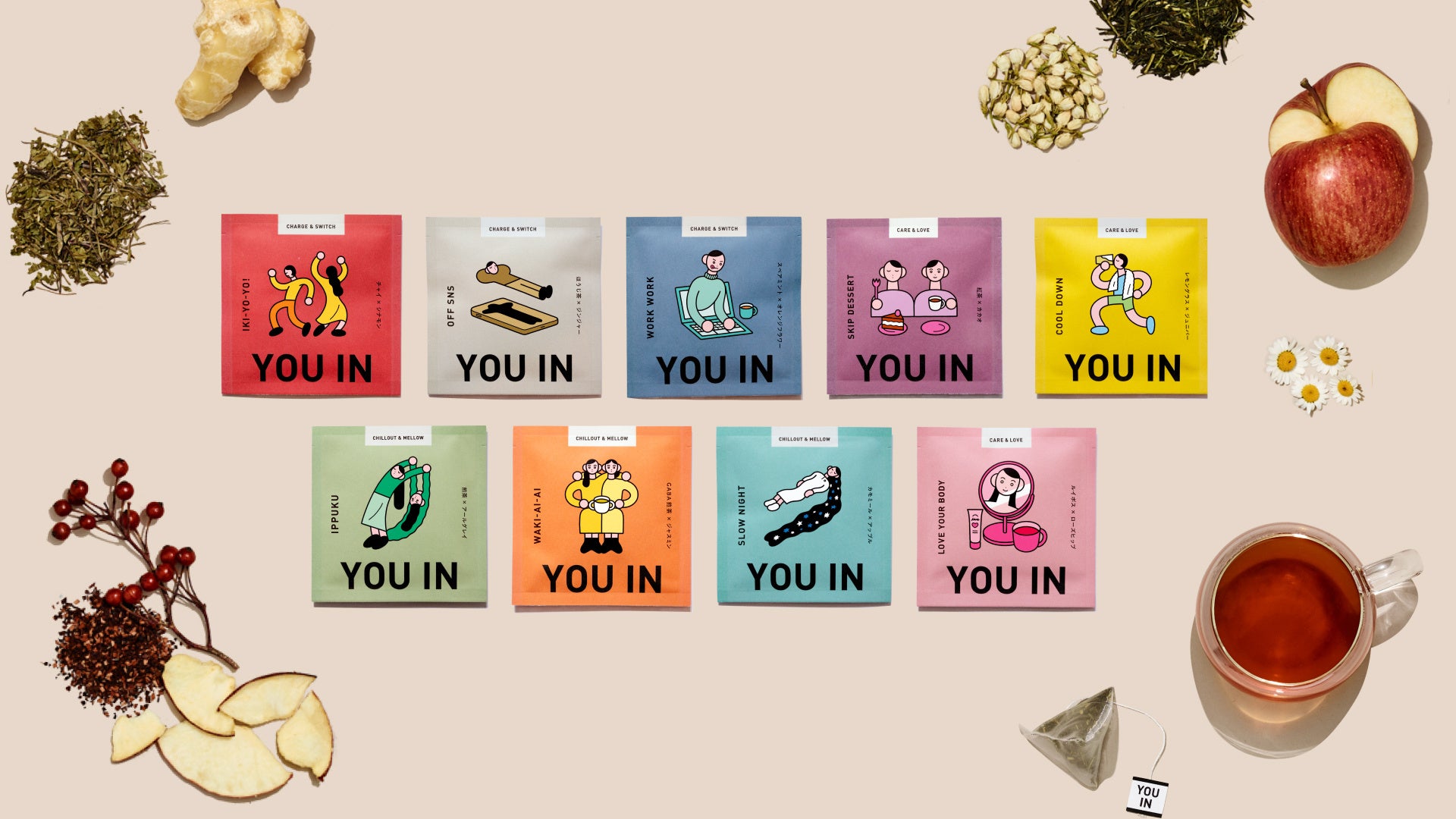 また、ご好評いただいているYOU IN初のスパークリングティー「CHEERS-MOOD」も販売いたします。自分へのご褒美はもちろん、大切な方へのギフトにもお選びください。