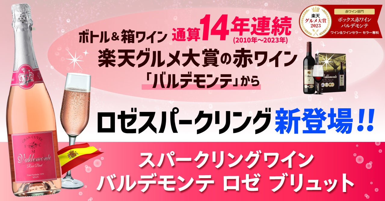 「バルデモンテ」とはセラー専科が長年に渡り販売しているワインのブランドです。大容量3Lの箱ワイン、BIB(バッグ イン ボックス)の販売をメインとしながら、より濃い赤ワインや白ワインなどぶどう品種別にバリエーションを揃えながら展開を行っています。なかでも赤ワイン「バルデモンテ レッド」は楽天市場で2010年から2023年の14年連続で「楽天グルメ大賞 赤ワイン部門」の受賞を誇るロングセラーワインです。さらに2020年よりスパークリングをリリース。そしてこの度、ロゼのスパークリングが仲間入りとなりました。