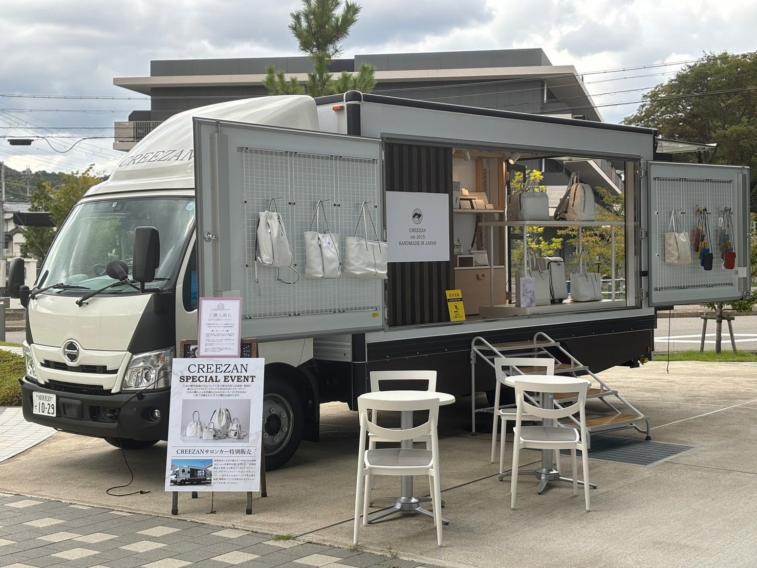 このたび、CREEZAN(クリーザン)では、バッグや革小物を展示販売する移動型店舗“サロンカー”と、直営店 CREEZAN 城崎本店のカフェで人気のメニューを提供する“キッチンカー”を、「六甲国際ゴルフ倶楽部(兵庫県神戸市)」の「六甲国際ゴルフレンジ」にて11月3日(金・祝)〜11月5日(日)の期間限定で展開します。