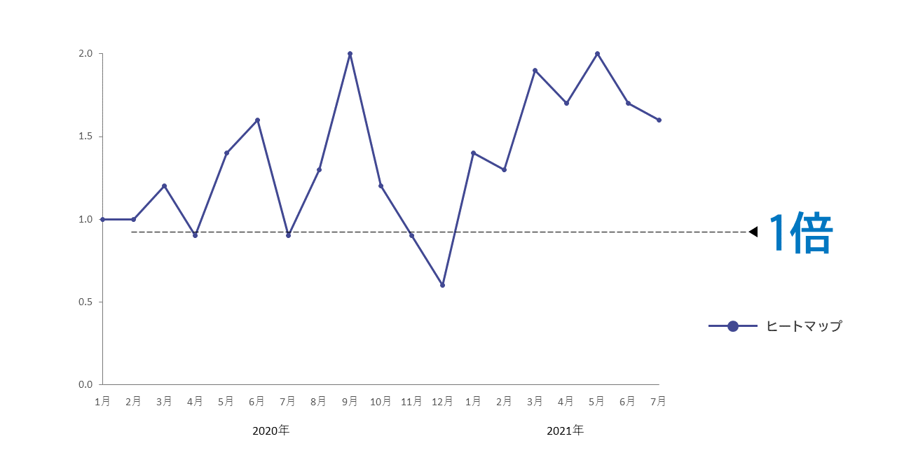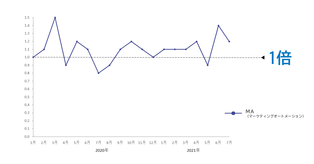 - 2020年1月の月間PV数を1.0とした場合の、「MA(マーケティングオートメーション)」カテゴリー月間PV数比率